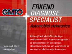 Tevens zijn we een door GMTO (Gerichte MotorTechnische Opleidingen) erkende autodiagnose-specialist.